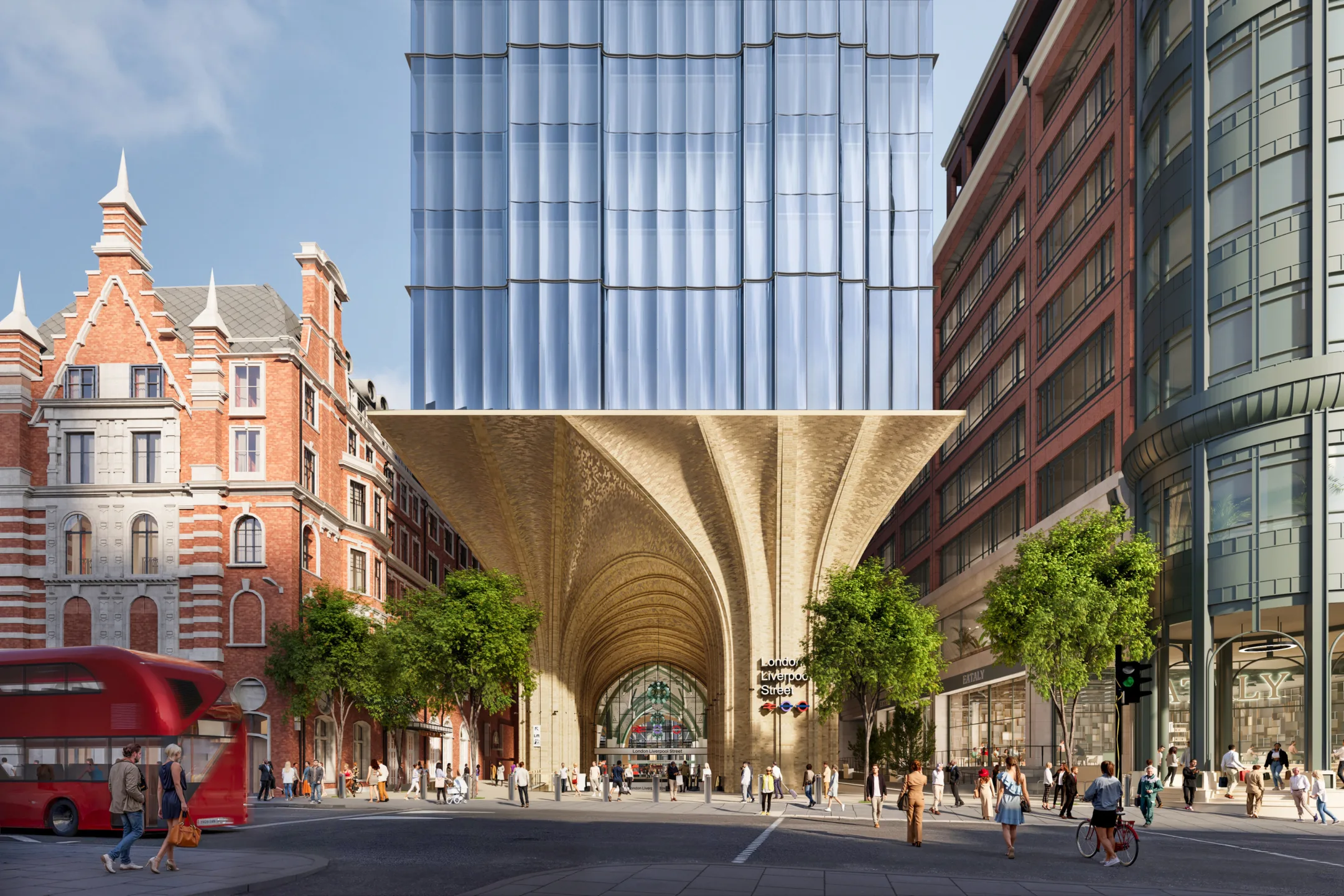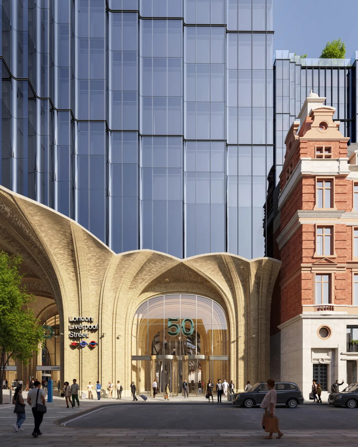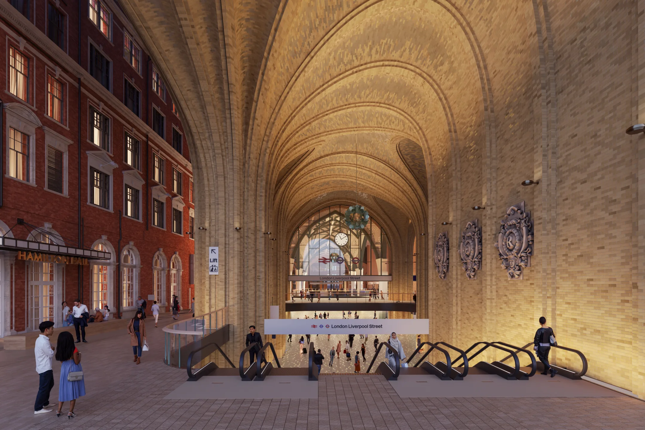 Rooted in a rigorous understanding of operational requirements and the station’s historic significance, the scheme balances performance with heritage. A new principal entrance on Bishopsgate is conceived as a grand civic invitation. Drawing on the language of classic railway architecture, including the celebrated archways of King’s Cross, the gateway is articulated in finely crafted brickwork at a confident civic scale.