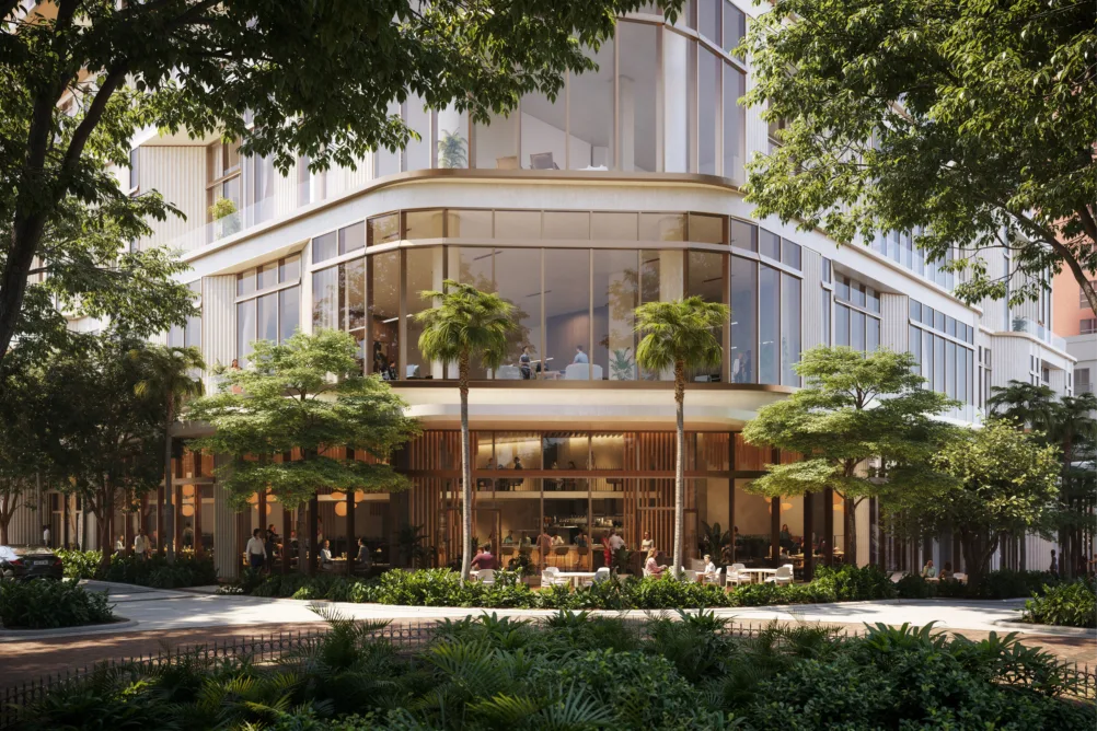 Set across four acres in the historic Old Port neighbourhood, the Old Port Square development will introduce a 380-foot-tall residential and commercial tower alongside a transparent retail pavilion. The scheme is supported by wider public realm improvements developed in collaboration with Michael Boucher Landscape Architecture and graphic design studio Pentagram.